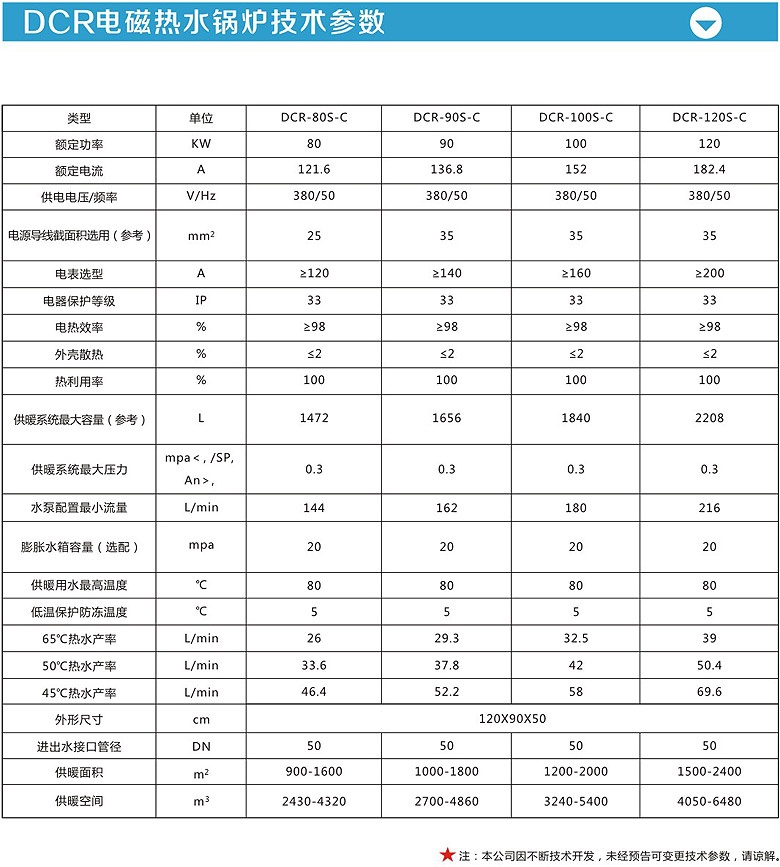 電磁熱水鍋爐是一種以有效節能的變頻電磁為熱源的新型水加熱設備。與傳統燃*鍋爐相比,電磁鍋爐熱水具有減少污染、無排放、占地面積小等優勢,這正是燃*鍋爐無法避免的缺點。通過電氣化系統控制大大節約了人力成本的投入。電磁熱水鍋爐與燃氣鍋爐相比有著無可比擬的安*優勢,它無泄漏,無排放。電磁加熱技術采用水電分離內外絕緣的方式避免了傳統電阻式加熱鍋爐易老化產生漏電的危險,壽命大大延長。