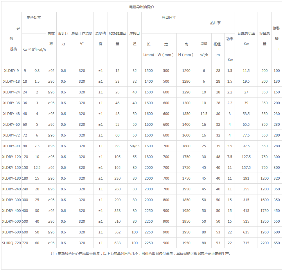 電磁導熱油爐,由加熱機機組(加熱管、高溫油泵、過濾器)、膨脹槽、電氣控制柜作為一整套設備與客戶的用熱設備進行連接,用戶只僅需接入電源、介質的進出口管。